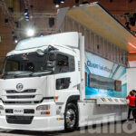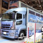 国内トラック車体メーカー/特装車メーカーの業界団体・日本自動車車体工業会の屋外ブース。こちらも架装物の電動化のみならず、車体のデザインや構造に関する試み、改正法規への対応などがみられました。