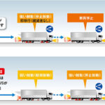 LNG車は、エネルギー密度が高いLNGを用いることから、満タン1回での航続距離が1000km以上となる。