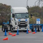 茨城県ひたちなか市の自動車安全運転センターで2日にわたり開催された競技は、初日に交通法規(40問)、構造機能(20問)、運転常識(20問)からなる学科競技と、実際のトラックを使った日常点検、簡易コース走行、課題走行(隘路、スラローム前進)の実科競技を実施。