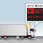 今回の改良では、全車に「車輪脱落予兆検知システム」を標準装備。ホイールナットの緩みを、ホイール転動のムラから検知するもので、脱落前にドライバーへ警報する。