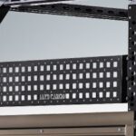 ワークキャリア側面に任意の高さで装着可能。多数の四角形のベルト孔やボルト孔を用いた固定だけでなく、荷台内部の積載物の抑えとしても有効