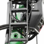 クレーン本体は現行機種と同じだが、塗装やコーティングの改良により耐候性が向上。クレーンコラムに4基、アウターブームに2基のLEDワークライトを装着し、トップシートへの昇降用ラダーにもLED照明を装備するなど、安全性もアップした。
