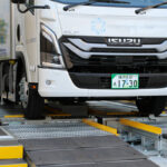 いすゞは2024年10月にバッテリー交換ステーション「EVision Cycle Concept(ECC)」を藤沢工場内に設置し、開発中のバッテリー交換式「エルフEV」を用いた構内実証を行なっている。