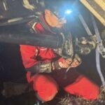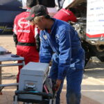 応急処置を行う同乗メカニックの望月裕司