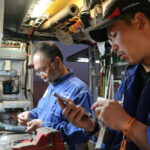 パーツを準備する鈴木誠一と菊池拓実
