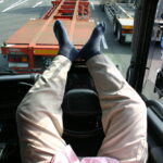 疲労回復に効果抜群のハンドルへの「足上げの儀」。乗り回しのキャビンではなかなかくつろげません